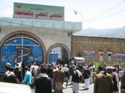 اغلاق مبنى المحافظة والمطالبة باقالة السلطة المحلية احتجاجا على تدوير مدراء المديريات في إب