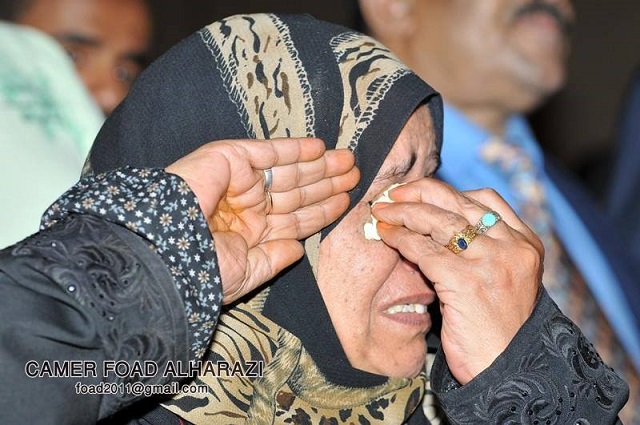 ابكت سيدة يمنية الوطن في العيد السادس والعشرين من سبتمبر واستطاعت ان توقظ دموع الضمير الوطني لدى ملايين اليمنيين في الذكرى الـ 52 من قيام ثورة الـ 26 من سبتمبر وتداول الالاف من الناشطين في مواقع التواصل الاجتماعي "الفيس بوك وتويتر " صورة لسيدة يمنية لم تتمالك نفسها اثناء تدشين حفل اقامته وزارة الثقافة لتحية الجمهورية اليمنية وما ان سمعت النشيد الوطني حتى تساقطت الدموع على خدودها بغزارة تعبيراً عن ما ال الية حال الوطن في العيد الـ 52 للثورة الذي تم الاحتفال به بشكل باهت. السيدة اليمنية التي اشغلت الراي العام اليمني وأثارت أعجابه ودفعت الالاف الى البكاء حال مشاهده صورتها وهي تؤدي تحيي علم الجمهورية اليمنية تعمل موظفة في البنك اليمني للإنشاء والتعمير، واكد الناشط عارف الشجاع والموظف بالبنك ان السيدة اليمنية التي ابكت الوطن واستطاعت ان توقظ الضمير الوطني لدى اليمنيين هي عائشة ابو راس زميلتي في العمل في البنك اليمني للإنشاء والتعمير حقاً ببكائها ابكت الجميع منظر معبر والصورة تختصر شرح كتاب بكامله عن وضع الوطن هذه الأيام " . وعقب نشر التي التقطتها عدسة المصور الفوتوغرافي فؤاد الحرازي يوم أمس الأول الخميس في المركز الثقافي بصنعاء حفل ثقافي وفني بمناسبة الذكرى الـ52 لثورة سبتمبر في بيت الثقافة انتشرت الصورة لتحتل الحدث الأبرز في العيد الـ 52 لثورة سبتمبر. وحصلت الصورة على رواجاً كبير بين ناشطي الفيسبوك، وعلق معظمهم بالحزن والألم على الدموع التي سقطت من تلك المرأة بعد أيام من سقوط العاصمة صنعاء في يد المسلحين الحوثيين، وسارع المئات من الناشطين عبر الفيس بوك الى تسجيل مما دفع بالألف من اليمنيين من نشر الصورة في صفحاتهم على الفيس بوك وتحويلها الى صورة البرفايل الخاص بهم